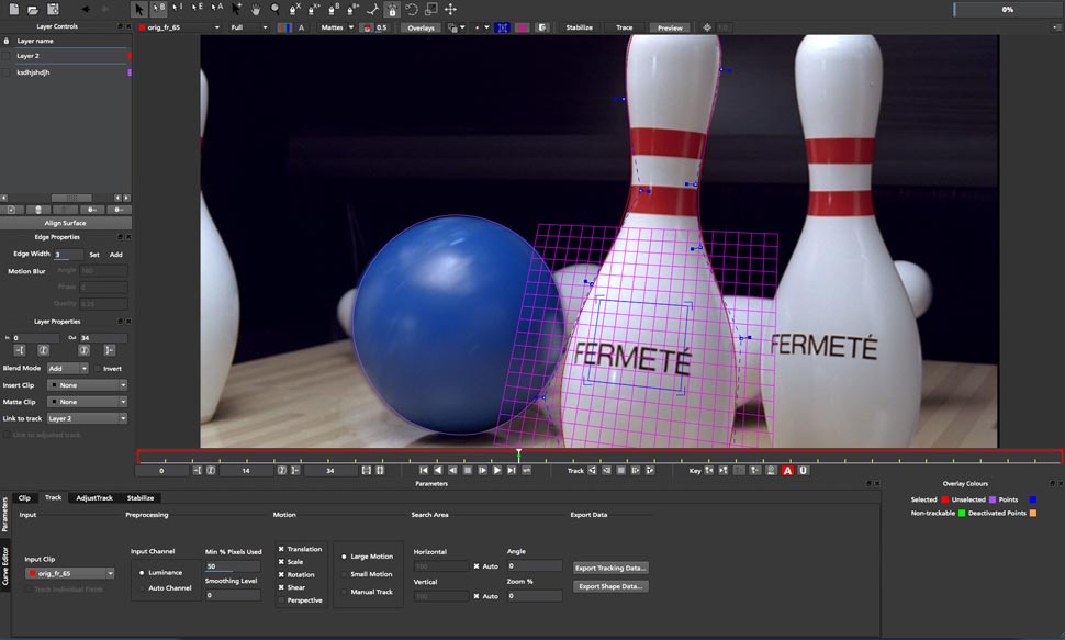 mocha AE von Imagineer Systems ist eine Standalone-Software, die speziell für das Tracking und Rotoscoping entwickelt wurde. Das Programm arbeitet mit einem so genannten Planar-Tracker. Dieser betrachtet den zu verfolgenden Bildausschnitt als Fläche bzw. Ebene. Hierzu spannt der Anwender über dem zu trackenden Objekt einen Bereichsrahmen auf. Angaben über die Transformation und Rotation des in diesem Bereich liegenden Objektes können so in vielen Fällen einfacher und zuverlässiger ermittelt werden, als dies mit dem üblichen Punkt-Tracker-Verfahren möglich ist. Im Besonderen bei komplexeren Tracking-Aufgaben hat der Planar-Tracker Vorteile, z. B. wenn das zu verfolgende Objekt im Laufe der Einstellung zum Teil verdeckt wird oder sich teilweise aus dem Bild bewegt. In Verbindung mit den Rotoscoping-Funktionen von mocha AE lassen sich bewegte Objekte so relativ zuverlässig ausmaskieren und mit Tracking-Daten versehen.