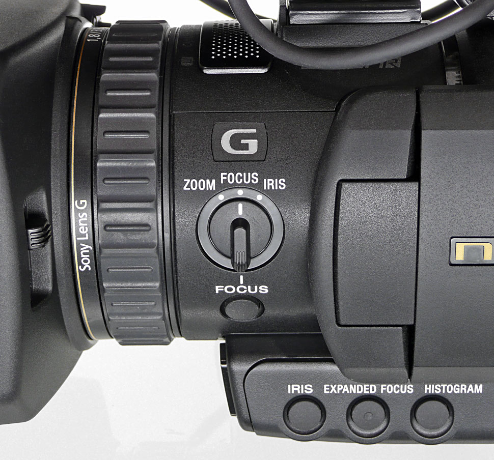 Nicht ganz nachvollziehbar fanden die Tester, warum Sony jeweils fest definierte Taster zum Ein- und Ausschalten der Histogramm-Funktion sowie der Expanded-Focus-Funktion einbaute, dafür aber für Zebra- und Peaking-Funktion keine direkte Zugriffsmöglichkeit spendierte. Tasten mit den individuell für richtig und wichtig befundenen Funktionen zu belegen, das erlaubt der NX70 nicht — nur auf dem Touchscreen selbst gibt es frei belegbare Bildschirmbuttons: Im linken Display-Bereich stehen drei frei belegbare »virtuelle« Tasten zu Verfügung, von Sony als »My Button« bezeichnet. Aus insgesamt acht Funktionen kann der Anwender auswählen, was dort bereitstehen soll: Blende, Gain, Shutter, Weißabgleich, Punkt-Fokus, Fokus (AF/MF), automatische Belichtung und Farbtemperaturänderung.