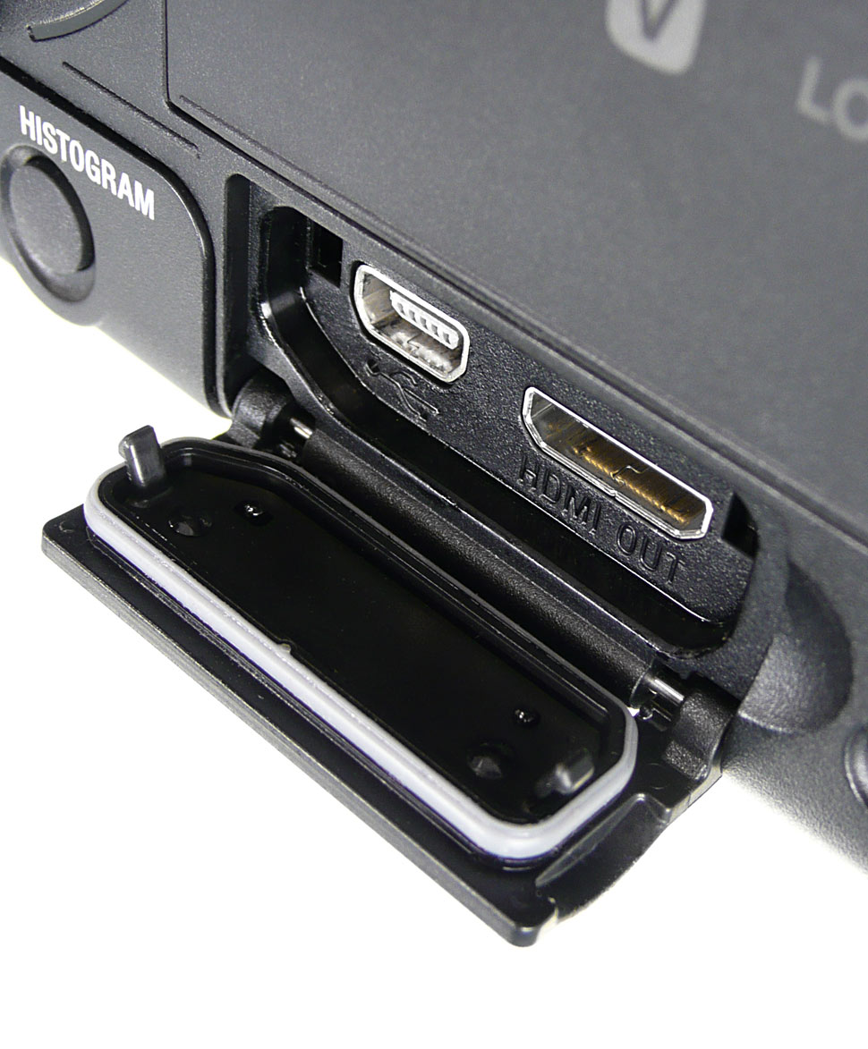 Sämtliche Anschlüsse sind hinter Abdeckungen verborgen, die zusätzlich abgedichtet wurden. Auf der linken Gehäuseseite befindet sich ein HDMI– und USB-Anschluss, rechts in der Nähe der Handschlaufe stehen Verbindungen für analoge Video- und Komponentensignale sowie eine Fernsteuerbuchse zur Verfügung. Der Kopfhöreranschluss sowie eine Buchse für den Netzstecker sind auf der Geräterückseite angebracht. Da kein separates Akkuladegerät im Lieferumfang enthalten ist, müssen die Akkus mit Hilfe des Netzteils innerhalb des NX70 geladen werden.