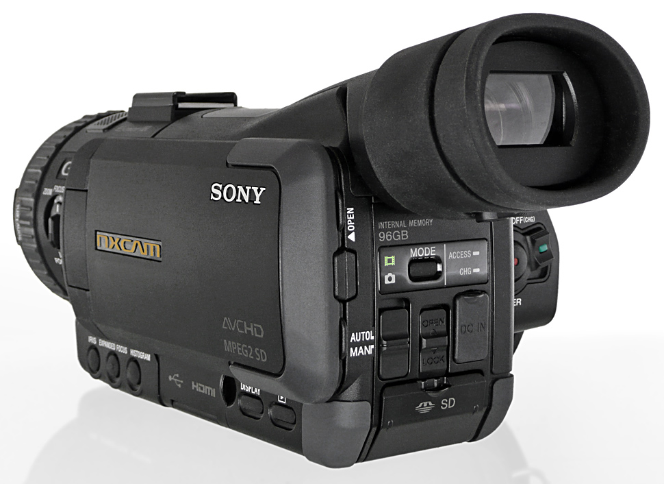 Überzeugend war — immer unter Berücksichtigung der Geräteklasse und des Preises — der Sucher des NX70. Belichtung und Schärfe konnten sehr gut beurteilt werden, die große Augenmuschel hielt selbst bei Brillenträgern das Umgebungslicht vom Sucher fern. Vorteilhaft ist auch der abnehmbare Handgriff: so lässt sich der ohnehin schon sehr kompakte Camcorder noch weiter verkleinern und flexibel einsetzen. Auch der Brennweitenbereich des 10fach-Zooms macht den NX70 interessant.