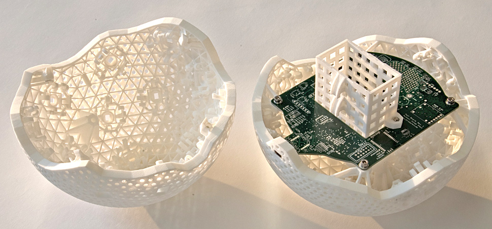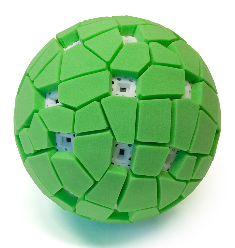 »Im Urlaub auf Tonga hatte ich Panorama-Aufnahmen gemacht. Man dreht sich im Kreis, macht mehre Fotos. Die werden später im Rechner zusammengesetzt. Das dauert sehr lange. Ich hatte dann die Idee, dass man etwas hochwerfen müsste, um das Bild auf einmal aufzunehmen.« Aus der Idee wurde das Projekt seiner Abschlussarbeit »Throwable Camera Array for Capturing Spherical Panoramas« im Fachgebiet Computer Graphics der Technischen Universität Berlin (Prof. Dr. Marc Alexa, Prof. Dr. Bernd Bickel). Im Rahmen der Arbeit entstand ein Prototyp, der etwa so groß ist wie ein Handball und rund 750 Gramm wiegt. Das Skelett, das die Kameramodule und die Elektronik trägt, besteht aus Nylon, außen schützen grüne Schaumstoff-Pads den Ball und erleichtern das Auffangen.