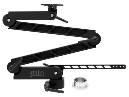 Als optionales Zubehör bietet Pollysystem einen ausklappbaren Arm, mit dem sich vielfältige Kameraperspektiven in allen Richtungen und Winkeln realisieren lassen – Fahrten knapp über dem Boden oder durch schmale Öffnungen hindurch können damit einfach bewerkstelligt werden. Der einfach montierbare Arm wiegt 4 kg. Eine mobile, zusammensteckbare Lauffläche für die Nutzung des Systems auf unebenen Untergründen befindet sich kurz vor der Fertigstellung.