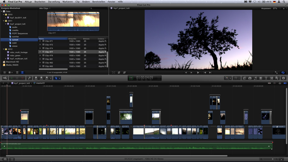 Mit dem Update auf Version 10.0.3 bietet Final Cut Pro X nun Multicam-Editing, bessere XML-Unterstützung sowie einen verfeinerten Chroma-Keyer. Eine Broadcast-Monitoring-Funktion, die sich allerdings noch im Beta-Stadium befindet, wurde ebenfalls integriert. Weiter können Photoshop-Dateien nun unter Beibehaltung der Ebenen importiert werden. Klingt gut? film-tv-video.de wollte wissen, wie sich die wichtigsten Neuerungen in der Praxis tatsächlich einsetzen lassen.