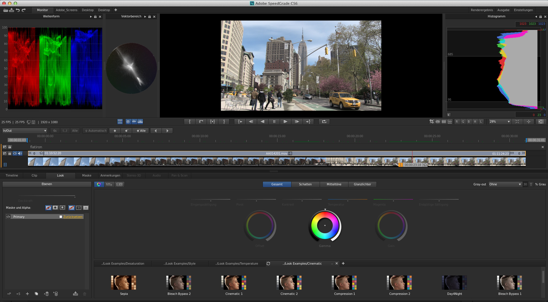 Aus kreativer Sicht sehr interessant ist das neu hinzugekommene Speedgrade (Einzeltest). Mit dieser ursprünglich von Iridas entwickelten und dann von Adobe zugekauften Farbkorrektur-Anwendung stehen nun auch in CS6 Werkzeuge zur Verfügung, die für ein detailliertes Color Grading notwendig sind. Durch die Erweiterung um Speedgrade wird es mit CS6 jetzt also möglich, komplette Projekte bis zum finalen Mastering innerhalb der Suite zu bearbeiten.