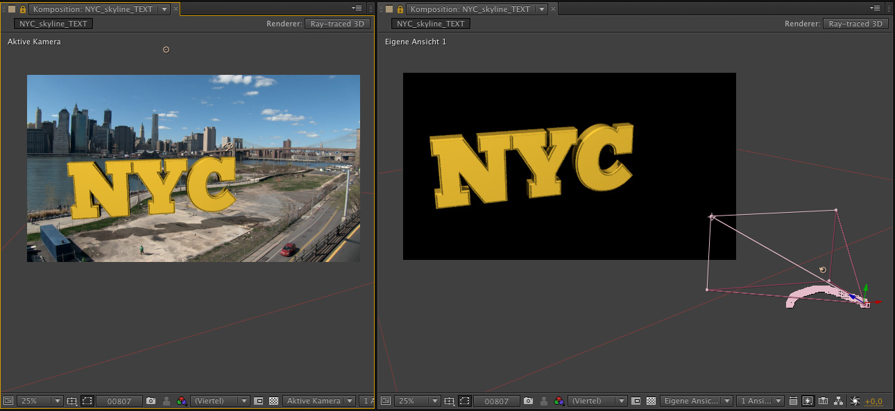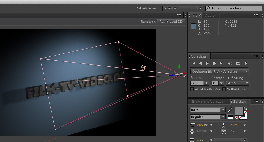 Für die schnelle Integration eines 3D-Textes konnte diese Lösung im Test durchaus überzeugen. Wie sich der 3D-Kameratracker im Vergleich zu den oben genannten, wesentlich teureren Stand-Alone-Trackern oder auch dem Cameratracker von The Foundry schlägt, muss ein separater Test zeigen.