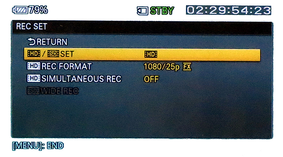 Beim Umschalten zwischen 50- und 60-Hz-Betrieb muss auch das interne Aufzeichnungsmedium neu formatiert werden. Ein Mischen der beiden Betriebsarten auf einer Speicherkarte ist nicht möglich. Je nach Betriebsart sind unterschiedliche Aufzeichnungsraster und Frameraten verfügbar: Bei der in Europa üblichen 50-Hz-Betriebsart hat der Anwender die Wahl zwischen 1080p50, 1080i50, 1080p25 oder 720p50. Entscheidet man sich für den Betrieb mit 60 Hz, stehen in den entsprechenden Auflösungen Frameraten von 60p, 60i und 30p zur Verfügung. Zusätzlich besteht im 60-Hz-Modus jedoch auch die Möglichkeit, direkt in 1080p24 aufzuzeichnen. Es ist mit dem FS700 auch möglich, in SD aufzunehmen. Hier kann zwischen 720 x 480/60i oder 720 x 576/50i gewählt werden. Die Slow-Motion-Funktion ist allerdings nur in den 1080p-Rastern verfügbar.