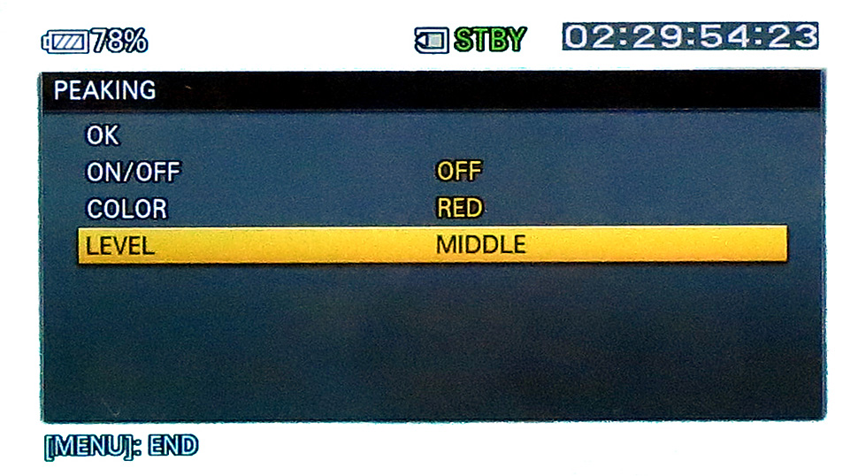 Der FS700 verfügt über sechs frei belegbare Assign-Buttons, die bereits ab Werk mit sinnvollen Funktionen belegt sind. So lassen sich per Knopfdruck zum Beispiel die Peaking-, Zebra- oder auch eine Histogramm-Darstellung aktivieren. Die Peaking-Funktion als Assistenzsystem beim manuellen Fokussieren empfanden die Tester jedoch als eher »grob«. Mitunter wurden Bildbereiche vom Peaking »zugeschmiert«, die schon relativ weit von der eigentlichen Schärfeebene entfernt lagen. Nach einiger Eingewöhnungszeit kommt man zwar besser mit dem Peaking zurecht, allerdings wäre es doch wünschenswert, die Peaking-Parameter im Menü noch individueller nach den eigenen Wünschen anpassen zu können. Dies ist in der aktuellen Firmware-Version des FS700 aber nicht möglich.