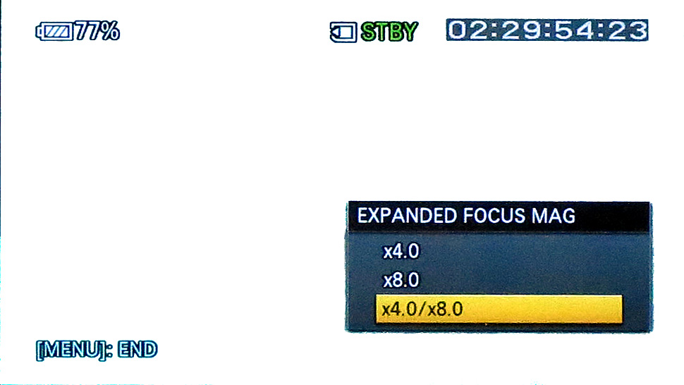 Um die Schärfe wirklich verlässlich setzen zu können, nutzten die Tester in etlichen Aufnahmesituationen daher die Push-AF-Funktion des FS700 in Verbindung mit der Ausschnittvergrößerung. Push AF ist jedoch nur mit entsprechenden Objektiven mit E- oder A-Mount nutzbar. Die Expanded-Focus-Funktion stellt eine vier- oder achtfache Ausschnittvergrößerung des Sucherbildes dar. Durch diese Vergrößerung des Bildausschnitts war es im Grunde stets möglich, die Schärfe zuverlässig manuell einzustellen. Expanded Focus ist auch in Kombination mit Peaking nutzbar.