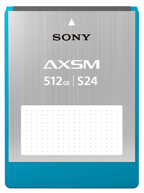 Der Recorder nutzt ein neues Speichermedium: eine Speicherkarte mit der Bezeichnung AXSM. Die Karte liegt von der Baugröße her zwischen der SxS-Karte und dem SR Memory, dem Speichermedium, das Sony für die bandlose Aufzeichnung im Zusammenspiel mit der F65 anbietet. Die Speicherkarte wird zunächst mit einer Kapazität von 512 GB angeboten, sie soll Übertragungsraten bis 2,46 Gbps erreichen. Aufgezeichnet wird im Dateisystem exFAT.