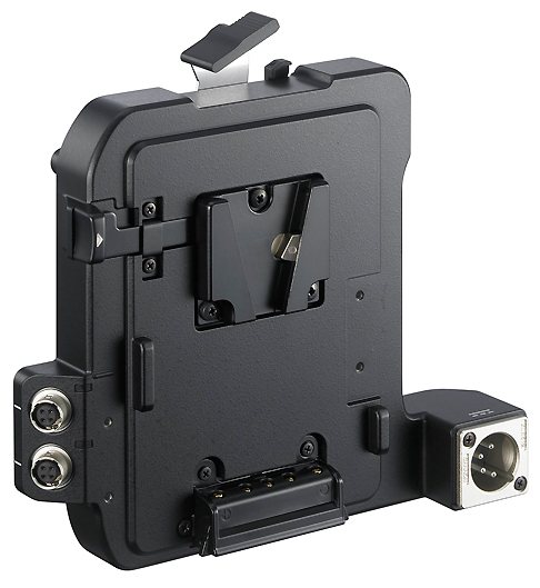 AXS-R5 heißt ein neuer, von den Abmessungen perfekt zur Kamera passender Dockrecorder für die Raw-Aufzeichnung, der sich kabellos mit den beiden Kameras verbinden lässt. Auf der Rückseite bietet er einen V-Mount, an dem sich dann wieder der mit der Kamera gelieferte — oder auch ein anderer — V-Mount-Akku anschließen lässt, der dann die Kamera und den Recorder mit Spannung versorgt.