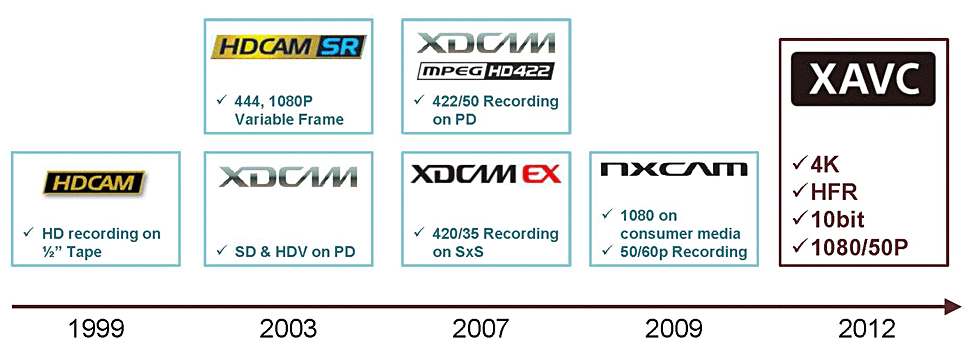 Sony argumentiert, es erfordere einen neuen Codec, um mit den aktuellen Trends in der Bildaufnahme so umgehen zu können, dass noch vernünftige Datenmengen entstehen: 1080p50-Signale muss ein solcher Codec problemlos verarbeiten können, aber auch 4K-Auflösung und höhere Bildraten müssen mit dem neuen Codec in 10 Bit Quantisierung irgendwie zu packen sein.