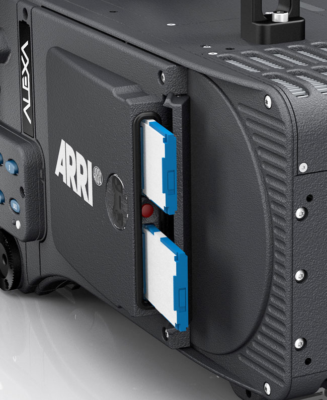 Das neue Modul ersetzt das bisher von der Alexa bekannte SxS-Seitenteil, es soll aber möglich sein, vorhandene SxS-Medien mit einem Adapter weiter zu nutzen wie bisher — also natürlich auch mit den bisher gültigen Datenraten und Formaten (ProRes, DNxHD). Allerdings stellt der Adapter nur einen SxS-Slot zur Verfügung, statt der zwei Slots, die man von der Alexa bisher kennt.