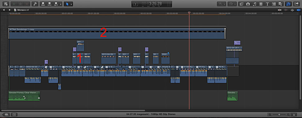 Leider lassen sich Projekte nicht kopieren, wenn gerade Hintergrundprozesse laufen. Das ist ein echter Nachteil. Zudem dauert es teilweise einige Minuten, bis ein Projekt kopiert ist — zumindest, wenn es sich um ein Projekt mit mehreren Ebenen und Grafiken handelt. Hier hat FCP X einen deutlichen Rückschritt gemacht, vor allem, wenn man wichtige Arbeitsetappen mit einer eigenen Timeline zwischenspeichern will.