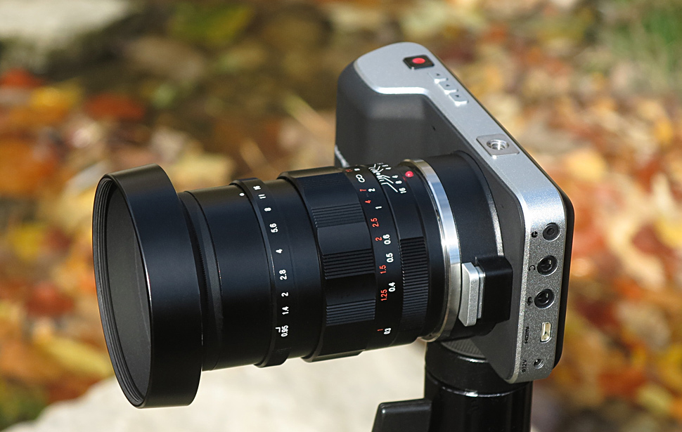 film-tv-video.de testete die PCC mit zwei Festbrennweiten aus der Classic Collection von Voigtländer: einem 25 mm/F 0.95 Nokton mit MFT-Anschluss und einem 50 mm/F1.1 mit Leica-M-Anschluss, das per Adapter verwendet wurde. Diese beiden robusten, lichtstarken Objektive wiegen knapp über 400 g und kosten jeweils rund genausoviel wie die Kamera selbst.