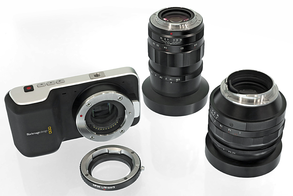 Blackmagic liefert die Kamera ohne Objektiv aus. Über den aktiven Micro-Four-Thirds-Anschluss (MFT) lassen sich zahlreiche MFT-Optiken nutzen. Die Pins des MFT-Anschlusses versorgen die MFT-Objektive mit Spannung und stellen die Kommunikation zwischen Kamera und Objektiv her: Es können also Objektive mit integrierter Bildstabilisierung genutzt werden und die Blende lässt sich von der Kamera aus steuern. Für den MFT-Wechselobjektivanschluss werden zahlreicher Objektive angeboten: MFT-Optiken haben etwa Zeiss, Voigtländer, Olympus, Panasonic und Leica im Programm.
