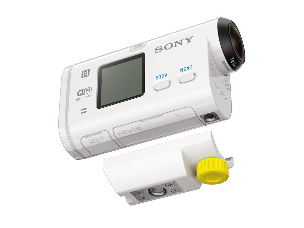 Sony kündigt mit der HDR-AS100V eine neue Action-Cam an, die HD-Signale per XAVC-Codec mit bis zu 50 Mbit/s aufzeichnet. Zudem soll das neue Modell durch eine lichtstarke Optik sowie den verwendeten Exmor R CMOS-Sensor auch unter schlechten Lichtverhältnissen noch hochwertige Bilder ermöglichen. Außerdem ist die Action-Cam gegen Spritzwasser geschützt.