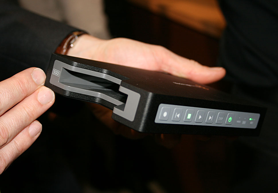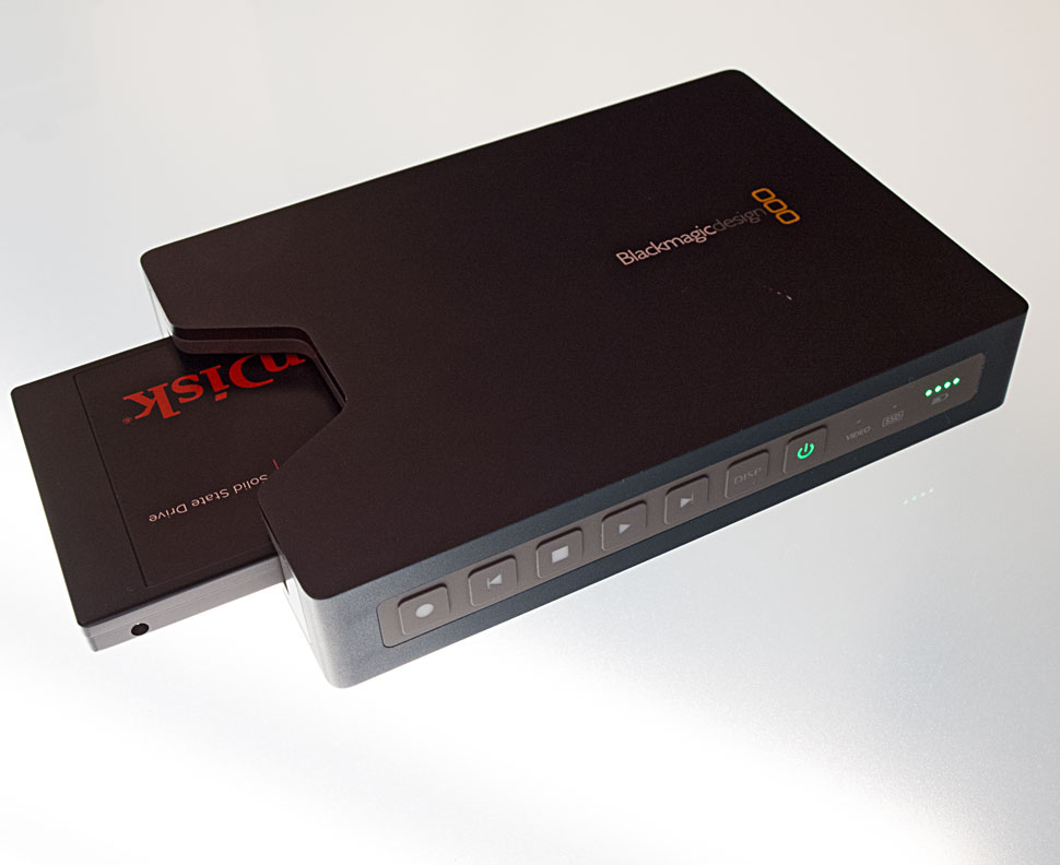 Mittlerweile gibt es etliche Hersteller, die mobile Recording-Systeme in den unterschiedlichsten Ausstattungsvarianten und Preissegmenten anbieten (siehe Pandora 2013: Übersicht mobile Recorder). Blackmagic hat mit dem Hyperdeck Shuttle 2 einen mobilen Recorder im Programm, der besonders durch sein günstiges Preis/Leistungs-Verhältnis auffällt: Aktuell ist der Hyperdeck Shuttle 2 zu einem Netto-Listenpreis von unter 300 Euro zu haben. Er ist damit das günstigste Recording-System, das die Aufnahme von unkomprimiertem HD-Video sowie ProRes– und DNxHD-Material bietet – und die Videosignale dabei in 10 Bit und 4:2:2 via HDMI– oder HD-SDI-Verbindung aufnimmt.