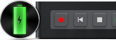 Wegen der fehlenden Option, die Aufnahme-Informationen als Overlay am Video-Output zur Verfügung zu stellen, besitzt der Hyperdeck-Recorder in der aktuellen Version nur sehr rudimentäre Funktionen zur Überwachung des Gerätestatus: Wird der Platz auf der Festplatte knapp, so äußert sich dies momentan nur durch eine blinkende Stop-Taste. Mit dem Beginn des Blinkens können noch etwa 3 Minuten Material aufgenommen werden. Auch die Anzeige der Restlaufzeit des integrierten Akkus ist relativ grob und wird über lediglich vier kleine LEDs angegeben. Apropos Akku: Im Test konnte mit dem fest eingebauten Akku bei durchgehender Aufzeichnung eines 1080i50-Signals mit ProRes-Codec eine Laufzeit von ungefähr 45 Minuten erreicht werden. Somit ist der integrierte Akku wohl eher als »Backup-Stromversorgung« ausgelegt. In der Praxis wird man zusätzliche externe Spannungsquellen verwenden müssen, um den Recorder über einen längeren Zeitraum einsetzen zu können.