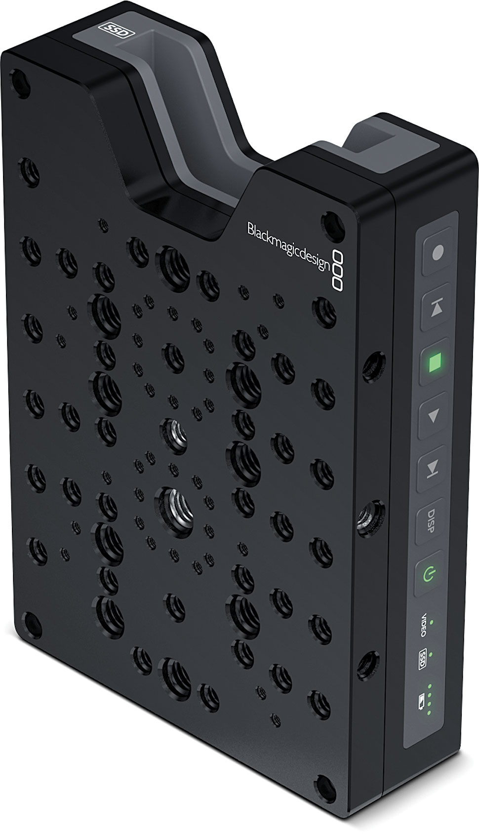 Hyperdeck Shuttle 2 zeichnet in den gängigen HD-Auflösungen auf: Bei einem Raster von 1.920 x 1.080 sind unter anderem Aufnahme-Bildraten von 23.98, 24, 25 und 30 Vollbildern möglich. Auch in 1080i50 oder 1080i60 kann aufgenommen werden. Signale im Raster 1.280 x 720 lassen sich mit den Bildraten 50p, 59.94p und 60p verarbeiten. Ebenfalls möglich ist das Recording von SD-Signalen in PAL und NTSC. Als Aufnahmemedium dienen wechselbare 2,5-Zoll-SSDs mit Sata-Interface.