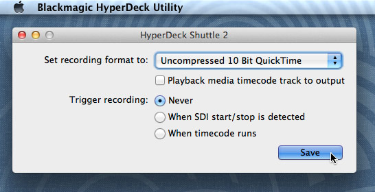 Außerdem kann der Anwender über die Software-Oberfläche von Hyperdeck Utility auswählen, ob der Start und Stopp der Recorder-Aufnahme »ferngesteuert« über ein Trigger-Signal oder über einen Timecode-Impuls der Kamera erfolgen soll – oder ob man die Aufnahme durch Drücken des Record-Buttons manuell direkt am Recorder aktivieren will. Allerdings spielt diese Option nur dann eine Rolle, wenn die Verbindung zwischen Kamera und Hyperdeck Shuttle per HD-SDI hergestellt wird. Liefert die Kamera lediglich ein HDMI-Signal, sind die automatischen Start/Stopp-Funktionen ohne Belang: Bei der Aufnahme eines HDMI-Signals muss die Aufnahme immer manuell über den Record-Button am Hyperdeck Shuttle gestartet werden.