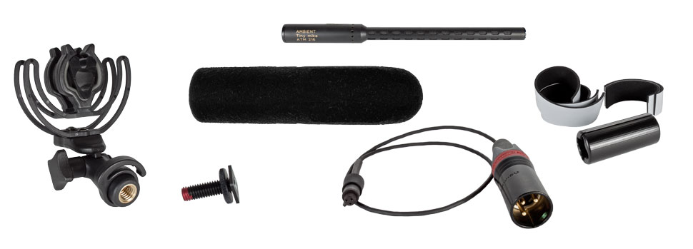 Ambient Recording hat mit dem TinyMike DSLR Set ein neues Richmikrofon-Set im Programm, das für den Einsatz mit DSLRs und Videokameras entwickelt wurde. Neben dem ultrakompakten Richtmikrofon ATM 216 TinyMike enthält das Set einen Rycote-Shockmount als Mikrofon-Halterung sowie einen Hot-Shoe-Adapter. Auch ein einfacher Windschutz und die notwendigen Kabel für den Anschluss des Mikrofons an der Kamera werden mitgeliefert.
