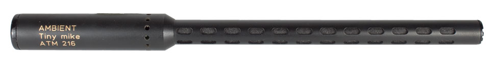 Trotz seiner hohen Richtwirkung konnte Ambient Recording das Mikrofon sehr klein und leicht konstruieren: Mit einer Länge von 14 cm und einem Durchmesser von 8 mm ist das ATM 216 kleiner als so mancher Schreibstift. Das Gewicht liegt bei ca. 30 Gramm.