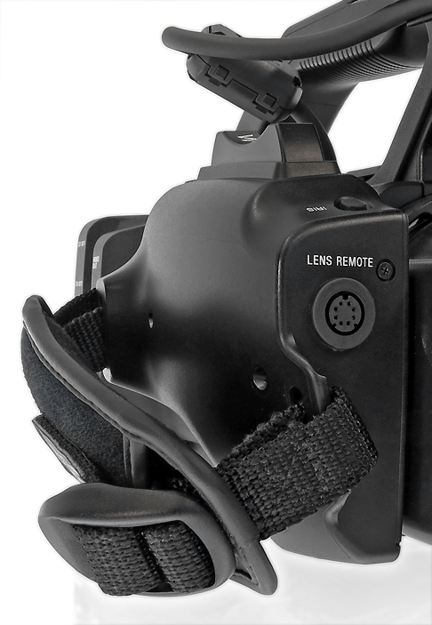 Einen ebenfalls positiven Eindruck hinterließen im Test die flexiblen Verstellmöglichkeiten der gesamten Sucherkonstruktion: Über einen stabilen Ausleger lässt sich der seitliche Abstand zwischen Sucher und Camcorder variieren. Gleichzeitig ist es möglich, den Sucher an einem kleinen Schwenkarm nach vorne, hinten, oben oder auch unten zu bewegen und zu drehen. Die Sucherkonstruktion kann so an jede denkbare Aufnahmesituation angepasst werden.