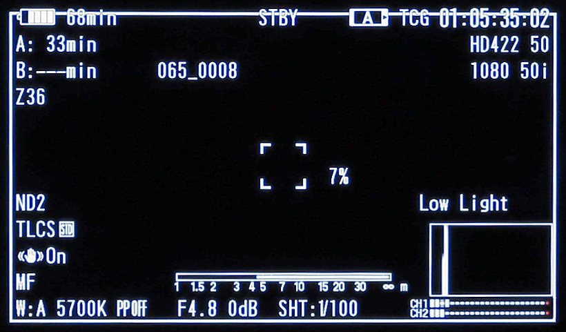 Wie bereits erwähnt, funktionierte das manuelle Setzen von Belichtung und Schärfe immer zuverlässig. Das Display des PMW-300 bietet hier die gewohnten, professionellen Hilfsfunktionen: