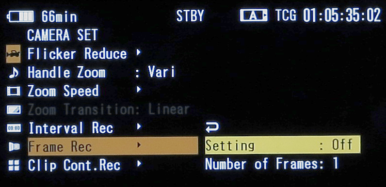 »Extremere« Zeitraffersequenzen, als sie mit S&Q Motion möglich sind, können mit dem PMW-300 über eine Intervallaufzeichnung-Funktion bewerkstelligt werden. Die Zeitraffer-Aufnahme von Wolkenbewegungen oder Sonnenuntergängen ist damit sehr einfach möglich. Weiter beherrscht der Camcorder noch die Einzelbildaufzeichnung, wodurch mit dem PMW-300 z. B. Stop-Motion-Animationen aufgenommen werden können.