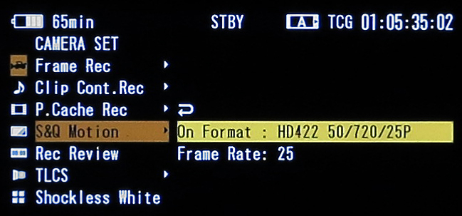 Der PMW-300 bietet einige Zusatzfunktionen, die beim Umsetzen kreativer Bildideen hilfreich sein können: Beispielsweise lassen sich mit der Funktion »Slow and Quick Motion« (S&Q Motion) Zeitlupen– und Zeitrafferaufnahmen realisieren. Allerdings sind die tatsächlichen Möglichkeiten von S&Q Motion stark vom eingestellten Aufnahmeraster abhängig. Ist der Camcorder auf die PAL-Region eingestellt, kann im Raster 1080p25 mit Aufzeichnungsbildraten von 1 fps bis 25 fps gearbeitet werden. Hier sind also lediglich Zeitraffer-Effekte möglich. Bei den Rastern 720p50 und 720p25 sind Aufnahmebildraten zwischen 1 fps und 50 fps wählbar. Zeitlupenaufnahmen sind somit nur im Raster 720p25 umsetzbar, da nur hier eine Aufnahmebildrate gesetzt werden kann, die über der späteren Wiedergabebildrate liegt. Sehr erfreulich: S&Q Motion lässt sich über einen speziell für diese Funktion reservierten Drehregler aktivieren und steuern, der sich an der linken Seite des Gehäuses befindet.