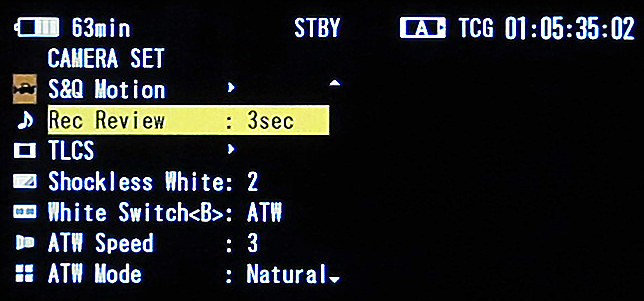 Das Menü des PMW-300 ist übersichtlich aufgebaut und orientiert sich an den anderen Modellen der PMW-Baureihe. Praktisch ist auch beim PMW-300 die Direct Menu-Funktion, mit der Parameter wie etwa die Verschlusszeit direkt über die Displayanzeige angewählt und verändert werden können, ohne sich durch Menüpunkte wählen zu müssen. Die Menü-Navigation kann dabei über ein Wählrad auf der linken Gehäuseseite oder über ein Steuerkreuz auf der Oberseite des Henkels erfolgen. Speziell mit dem Steuerkreuz konnte man sich sehr schnell und intuitiv durch die Menüstruktur des PMW-300 bewegen.