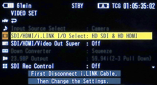 Die Anschlussoptionen des PMW-300 lassen nach Ansicht der Tester keine Wünsche offen: Zur Ausgabe von HD-SDI– oder SD-SDI-Signalen hat Sony dem Camcorder zwei BNC-Buchsen spendiert. Ebenfalls vorhanden ist ein HDMI-Output. Ein analoges Composite-Signal kann an einer weiteren BNC-Buchse abgegriffen werden. Durch Timecode-In/Out sowie einen Genlock-Input lässt sich der Camcorder auch in Studio-Infrastrukturen oder einem Multi-Kamera-Setup einsetzen. An einem Remote-Anschluss können kompatible RCPs angeschlossen werden, wie beispielsweise die Sony RM-B170. Über eine Firewire 400-Buchse kann der Camcorder zudem ein Videosignal nach HDV- und DV-Standard ausgeben und aufzeichnen.