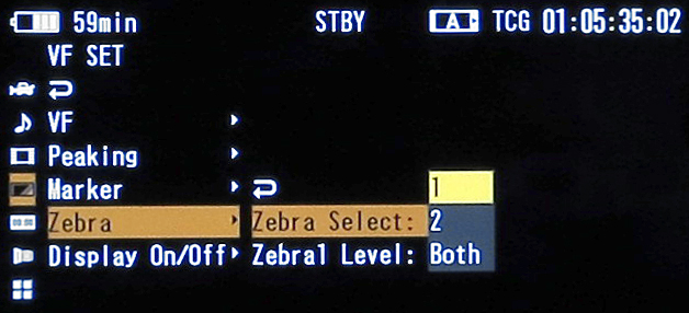 Für das manuelle Belichten kann eine Zebra-Funktion genutzt werden, die das Einblenden von zwei Zebra-Mustern gleichzeitig ermöglicht – zum Beispiel bei Pegeln von 70 % und 100 %. Zusätzlich zur Zebra-Funktion kann im Display des PMW-300 auch eine Histogramm-Darstellung eingeblendet werden, mit der sich ein schneller Eindruck von der Helligkeitsverteilung des aktuellen Motivs gewinnen lässt. Mit der Kombination von Zebra und Histogramm konnte immer eine korrekte, manuelle Belichtungseinstellung gefunden werden. Hilfreich ist auch eine Art »Spotmeter«, das die Helligkeit in einem kleinen Bereich in der Bildmitte misst. So können dann bestimmte Bildobjekte, deren Videopegel man in Erfahrung bringen möchte, »ins Visier« genommen und die Belichtung darauf abgestimmt werden.