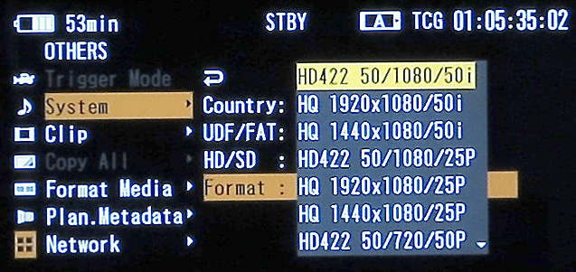Der Vollständigkeit halber sei noch erwähnt, dass der PMW-300 auch die Aufnahme in der reduzierten HD-Auflösung von 1440 x 1080 anbietet, wie sie von früheren HDV-, XDCAM HD- und XDCAM EX-Systemen bekannt ist. Ebenfalls mit an Bord sind PAL-SD und NTSC-SD. Für die SD-Aufzeichnung stehen wahlweise die Codecs IMX50 und DVCAM bereit.