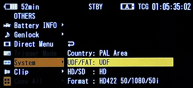 Für das Arbeiten in XDCAM HD 422 muss die verwendete SxS-Karte in UDF formatiert sein. Um XDCAM EX nutzen zu können, muss man eine FAT-formatierte Speicherkarte verwenden. XDCAM HD 422 und XDCAM EX können also nicht auf einem gemeinsamen Speichermedium aufgezeichnet werden.
