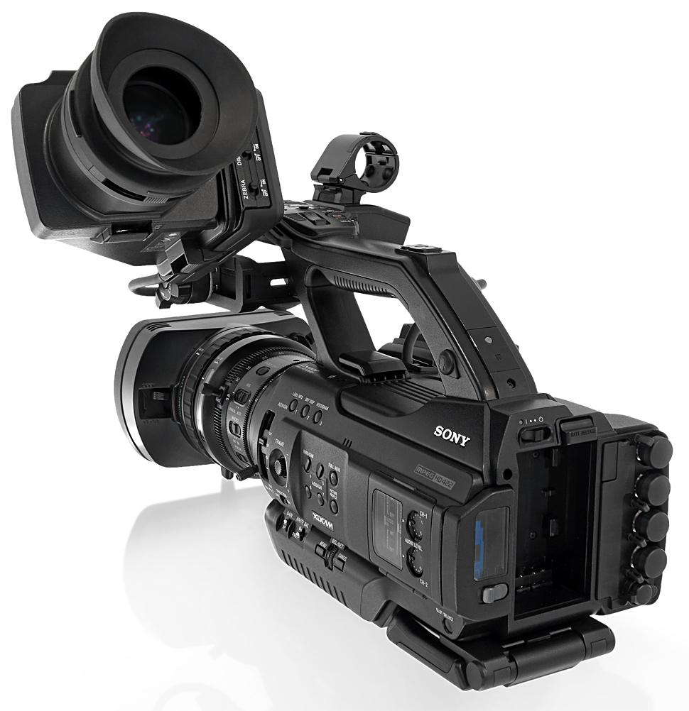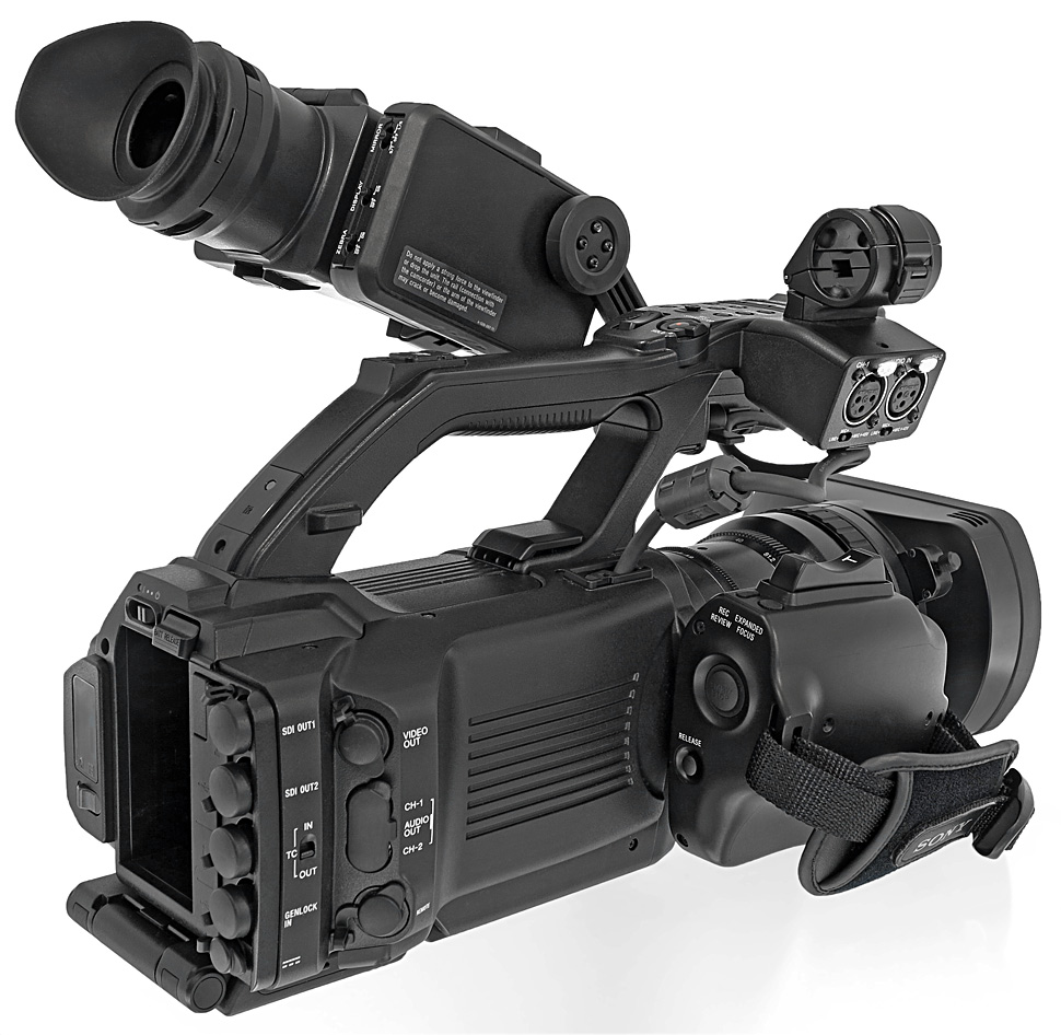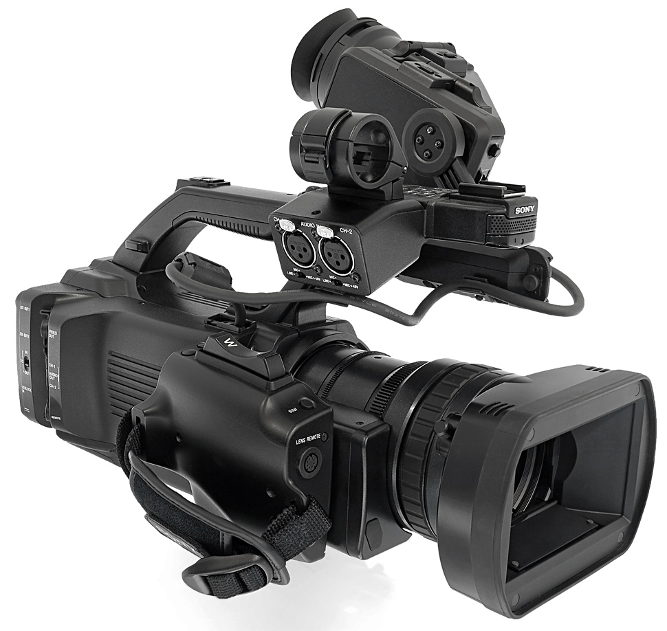Der Sony PMW-300 ist ein Semi-Schultercamcorder und nutzt somit ein Geräte-Design, das sich zwischen »klassischem« Handheld und kompaktem Schultercamcorder bewegt: Denn während die Wechseloptik und der große, seitliche Sucher des PMW-300 an einen Schultercamcorder erinnern, orientiert sich das übrige Aussehen des Camcorders an einem Handheld.
