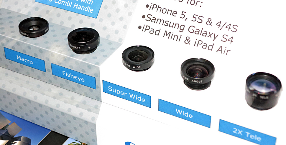 Für Handys und Tablets bietet Schneider die Objektivlinie iPro Lens an. Dank eines neuen Clips lassen sich die iPro-Objektive nun auch an iPad, iPad Mini, Mini Retina und iPad Air von Apple nutzen. Der Clip sorgt dafür, dass die Vorsatzlinsen exakt vor den integrierten Kameras dieser Geräte positioniert werden. Ein Drehverschluss erlaubt einerseit sicheren Halt und andererseits schnellen Wechsel zwischen Makro, Super-Weitwinkel, Weitwinkel, 2x-Tele und Fisheye-Vorsatzobjektiv. iPro-Objektive gibt es auch passend für das iPhone 5S, 5, 4S, 4 und für Samsung Galaxy S4.