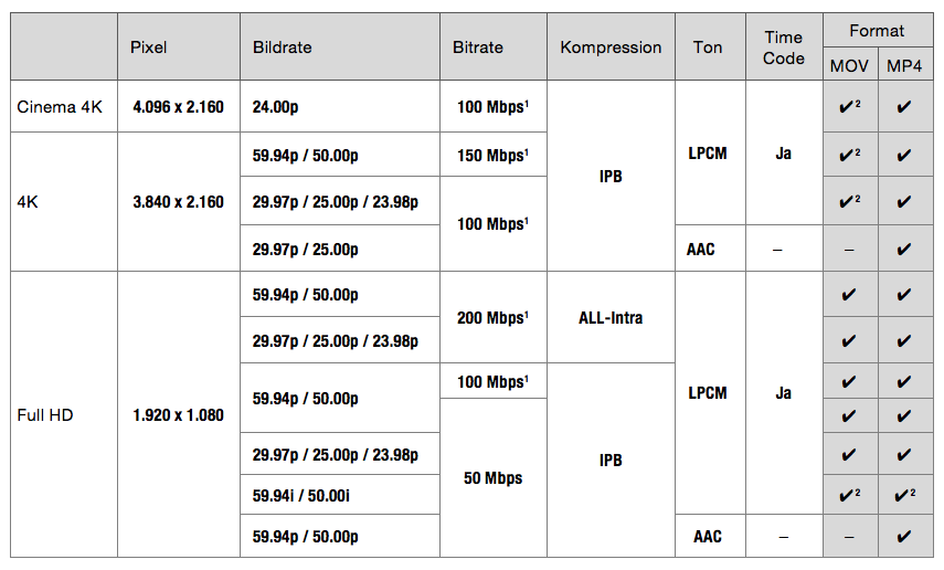 Mit seinen verschiedenen Aufnahmeformaten und Frameraten ist der HC-X1000 für vielfältige Anwendungen vorbereitet. Neben dem AVCHD– wird auch das MOV- und MP4-Format unterstützt. Full HD Aufnahmen verwenden die ALL-Intra Kompression für eine maximale Bitrate von 200 Mbps.