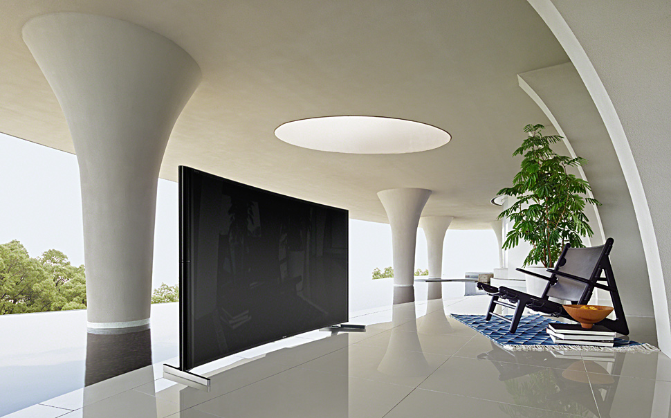 In den typischen TV-Nutzungsszenarien ist das Unsinn, denn nur derjenige Zuschauer, der vor der Bildschirmmitte sitzt, sieht ein optimales Bild. Als PC- oder Schnittplatzmonitor mögen die Biege-Bildschirme eventuell sinnvoll sein — ihren höheren Platzbedarf sollte man allerdings am Schreibtisch berücksichtigen.
