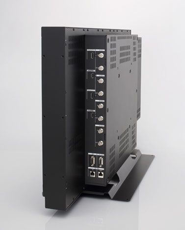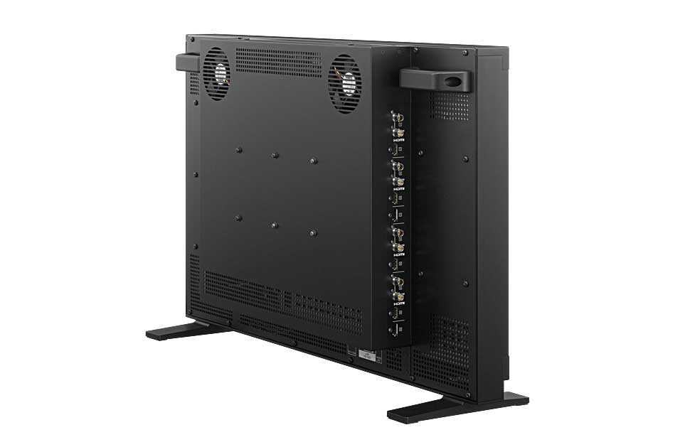 Anschlussseitig bietet der Monitor von Panasonic 4 x 3G-SDI / HD-SDI-Inputs. Die SDI-Signale können an vier Loop-Through-Ausgängen unverändert abgegriffen werden. Zudem besitzt der Monitor je zwei HDMI– und Display-Port-Eingänge.